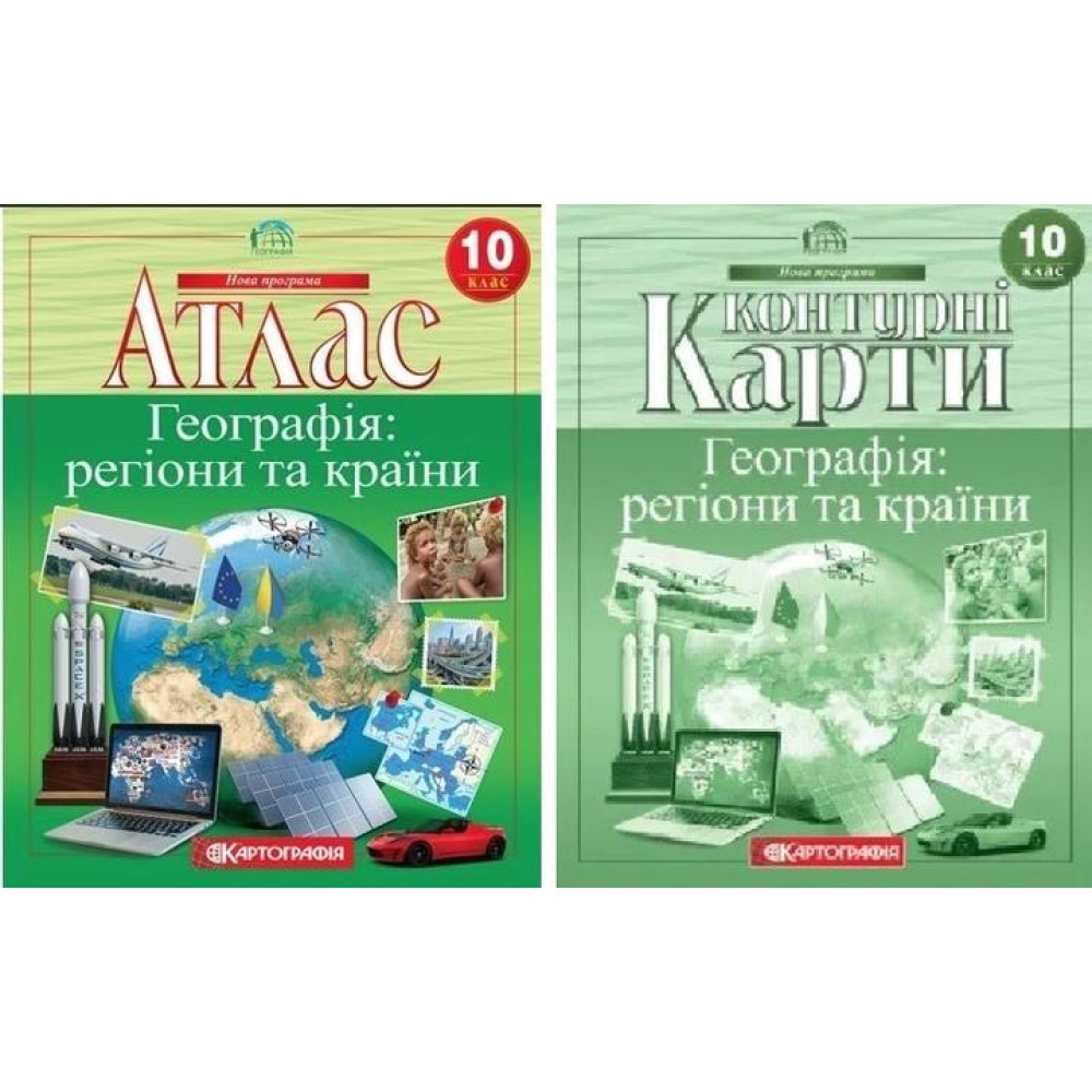 Цей навчальний комплект створено відповідно до програми географії для 10 класу, яка охоплює тему «Географія: регіони та країни». У комплект входять атлас із сучасними тематичними картами та контурні карти для закріплення знань та формування практичних навичок.